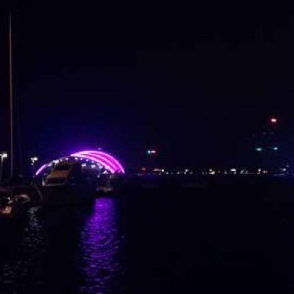 可能是因为时间已晚,又是秋末冬初的季节,奥帆中心并没有想象中的繁华热闹。路灯昏暗、人员冷清、成排结队的旗杆上光秃秃的,情人坝酒吧街也是黑灯瞎火。说好的“灯光璀璨、霓虹斑斓、显尽魅色”呢? 展开