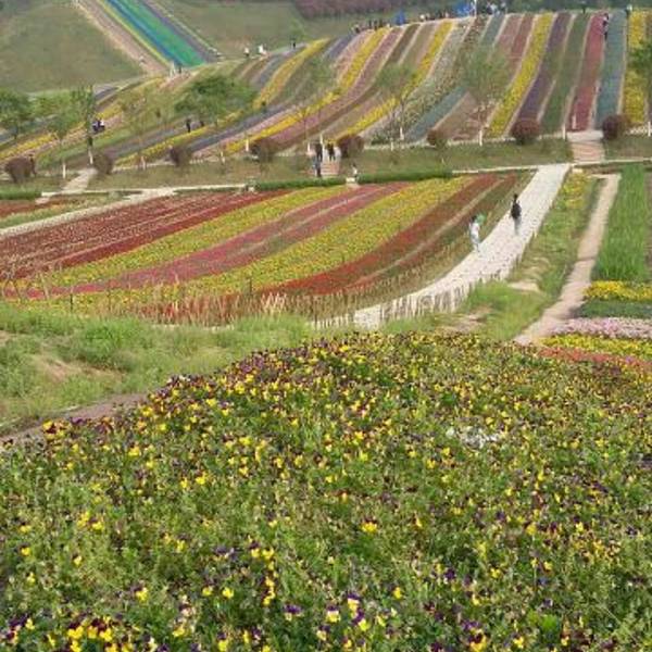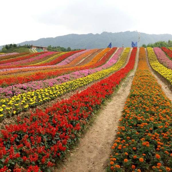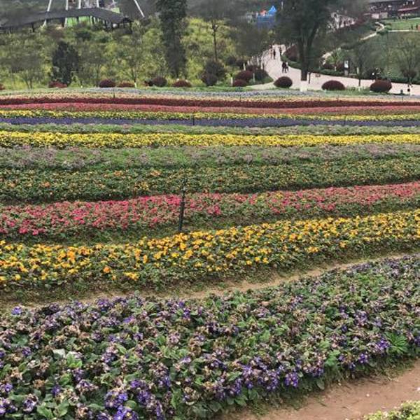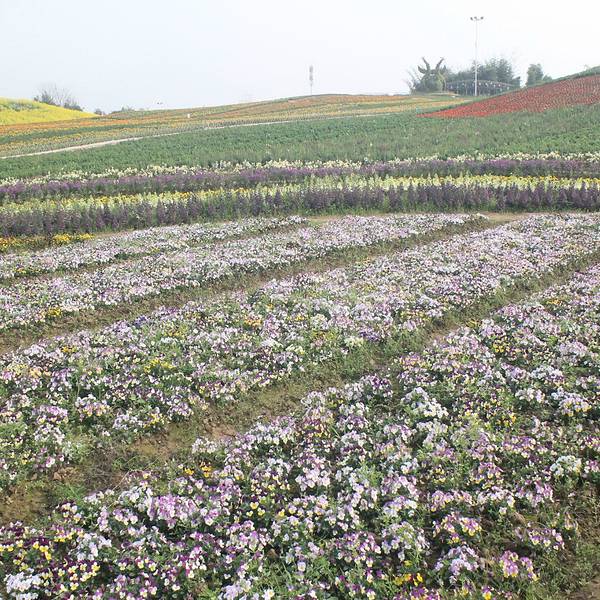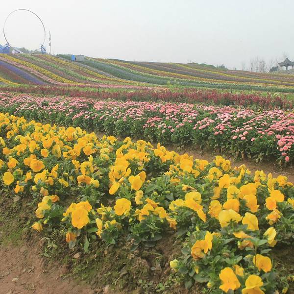 重庆铜梁县黄角门奇彩梦园寻一方净土,看山城花开满园的浪漫,一垄垄的鲜花汇成一片片花的海洋。