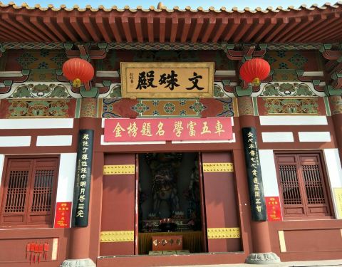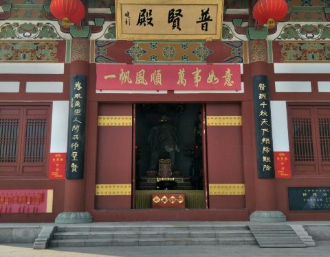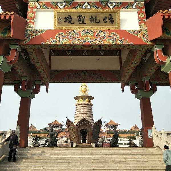 蟠桃山佛教文化景区,当地人称宝莲寺,位于徐州东郊,始建于南北朝时期,宝莲寺外观恢弘大气,内部装修金碧辉煌,游人不多,可以烧香祈福。景区的大门在南端,主体建筑沿南北走向的中轴线排布,钟楼、鼓楼分布在寺门两侧。由南边的宝莲寺路步入。继续往北,就来到了寺庙的主体部分。在大雄宝殿“七佛殿”里可以看到长37.5米的童子拜观音壁画,非常精美。中轴线北端的通天阁内,供奉高39.88米的弥勒铜像,宏伟壮观。寺庙的其他房间有供奉法显和尚的祖师殿、供奉关羽的伽蓝殿、地藏殿、观音殿、文殊殿、普贤殿、藏经阁等。如果要细细游览寺庙,那么还可以留意下各建筑上的楹联匾额,多为国内书法名家作品。景区内提供斋饭吃,需另外付费。