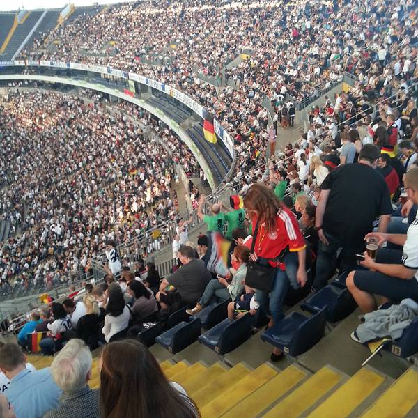 德甲现场还是非常壮观的,虽然法兰克福球队在中国没太多球迷,但是过来感受一下还是非常不错的。提前了1个礼拜买的球票30欧。还可以,比西甲和英超要便宜N多!