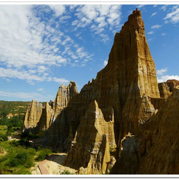 土林高大密集,圆锥状土柱尤为发育完好。千姿百态的造型,就仿佛使人进入另一个新奇的天地。