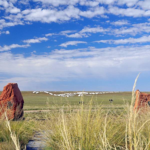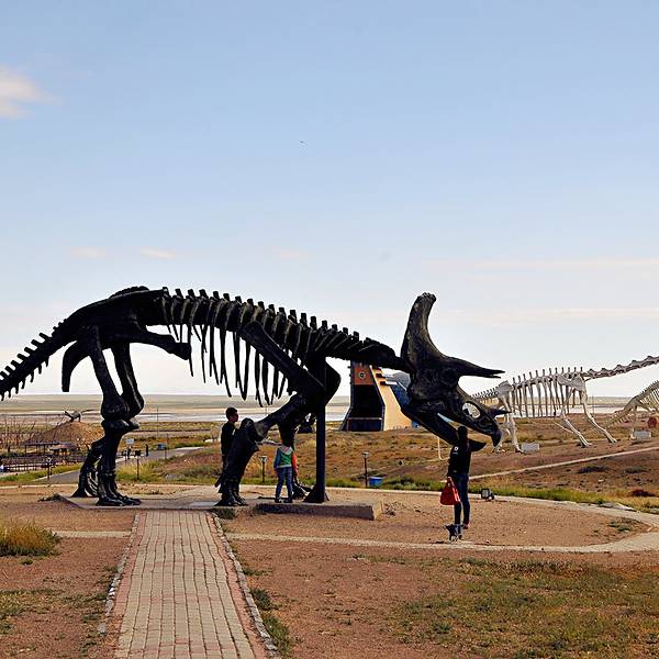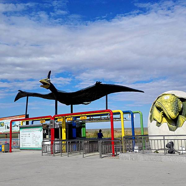 地质公园占地很大,蓝天白云下遍布着各种类的恐龙雕塑。离开国门驱车去往二连白垩纪恐龙自然保护区离开国门驱车去往二连白垩纪恐龙自然保护区。