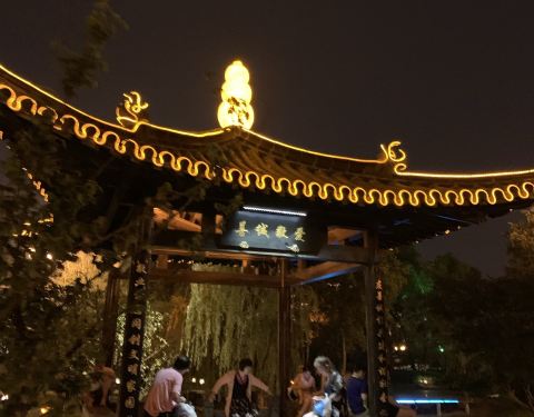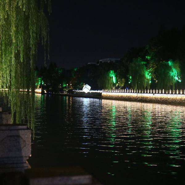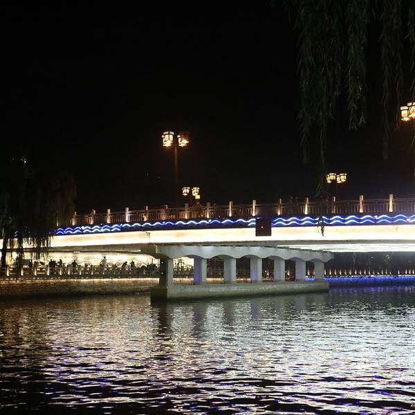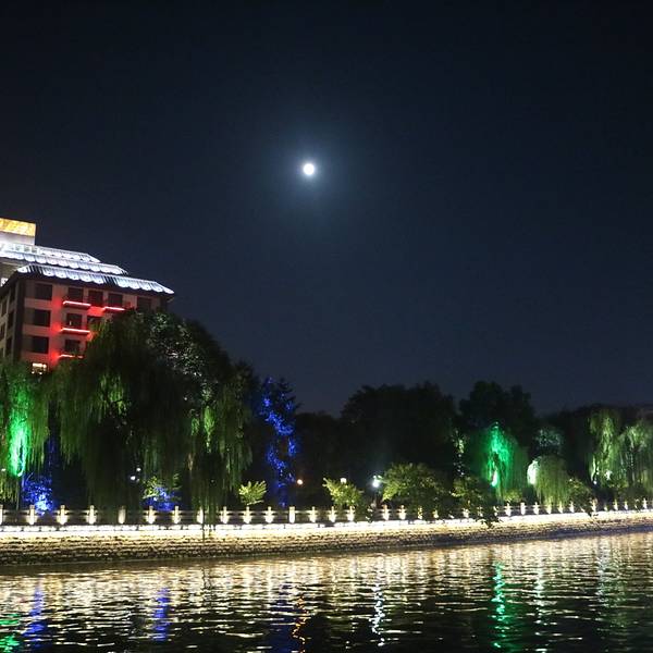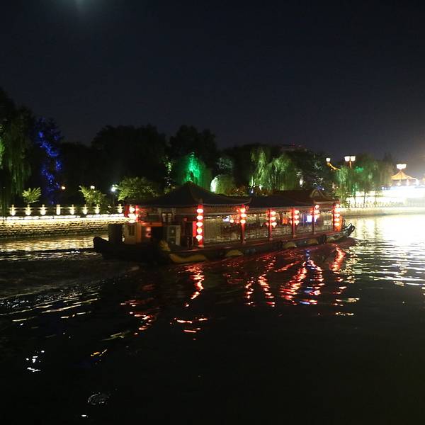 刚好当天能看到一轮明月,晚风习习,舒服万分。保存的比较完整的城门,还有一些车辙印被保存在了地下。东门外的河道晚上也是热闹非凡,很多当地人在唱歌跳广场舞,遛狗,散步,还有小哥唱歌,凉风习习,买一杯啤酒,圆月当空,也是一个美好的中秋夜。游船 展开