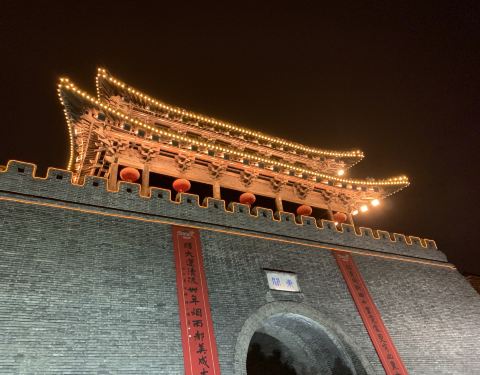 东门遗址在东关街西端,现在的东门城楼是后来重建的,但确实是按照考古推测的原貌恢复的,而且还重建...东门遗址在东关街西端,现在的东门城楼是后来重建的,但确实是按照考古推测的原貌恢复的,而且还重建了原来城门的通道,晚上城楼还会亮灯,看着很漂亮。