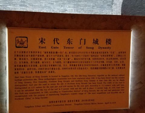 近年来先是开辟了遗址公园,又按照宋代的书重建了城门。可以登上城楼俯瞰东关镇这是宋代扬州城东门的遗址所在地,底下又压着唐代的遗迹。近年来先是开辟了遗址公园,又按照宋代的书重建了城门。可以登上城楼俯瞰东关镇