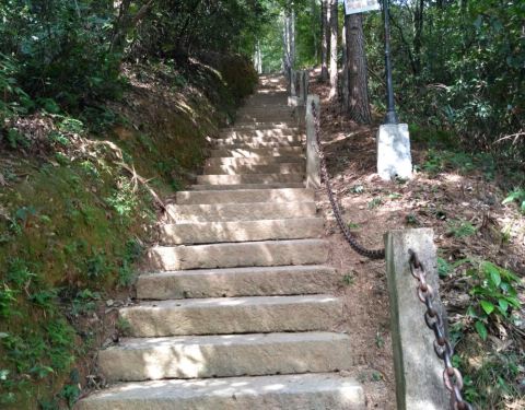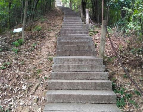 很高的楼梯,山顶有面吃,饿了的话就觉得很好吃,山下面有农家乐,挺好玩