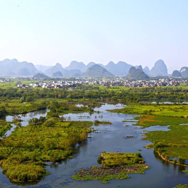 会仙湿地是中国最大的岩溶湿地,被誉为“漓江之肾”,是漓江流域最大的喀斯特地貌原生态湿地会仙湿地是中国最大的岩溶湿地,被誉为“漓江之肾”,是漓江流域最大的喀斯特地貌原生态湿地。湿地内岛屿星罗棋布,山水相得益彰,集“山、水、田、园、林、沼、运”等景观要素于一体,以其岩溶湿地之典型、山水...会仙湿地是中国最大的岩溶湿地,被誉为“漓江之肾”,是漓江流域最大的喀斯特地貌原生态湿地。湿地内岛屿星罗棋布,山水相得益彰,集“山、水、田、园、林、沼、运”等景观要素于一体,以其岩溶湿地之典型、山水景观之秀丽、历史文化之深蕴而著称。该湿地风貌及其周边环境不仅在广西是独一无二的,在全国乃至全球峰林岩溶平原风貌中也极为罕见,是极具研究价值的典型湿地。 在铜桥上拍美美照。铜桥其实没有铜,而是一座纯石桥,建于清朝,距今已有几百年的历史。会仙铜桥有很多美丽的故事,是桂林著名的水田风光、玻璃田摄影景区。 展开