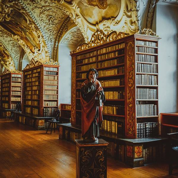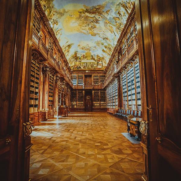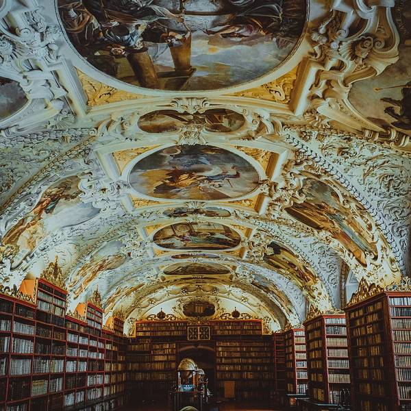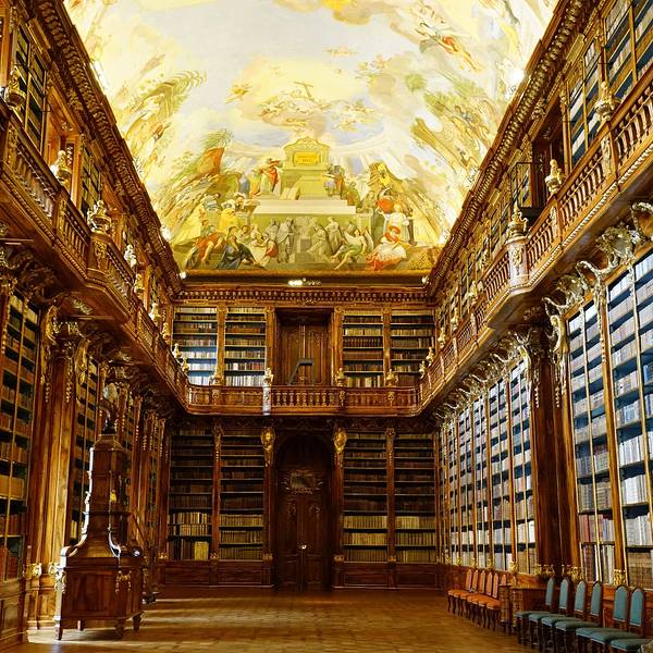 斯特拉霍夫修道院图书馆是捷克较大的修道院图书馆。尤其图书馆的穹顶壁画绘制得美轮美奂,引人注目。 参观导览 斯特拉霍夫修道院图书馆隶属于斯特拉霍夫修道院的一部分,整座建筑包含了建于1794年的哲学室和建于1671年的神学室两座巴洛克式的图书馆。藏书总量高达20000册之多。 进入神学图书馆,整个空间充斥着浓烈的巴洛克风,室内摆放着多个地球仪和书柜,而内部的穹顶壁画则由18世纪闻名画家绘制,显得非常精致华美,透着浓浓的艺术气息。 参观完神学图书馆,可再逛逛哲学图书馆,空间比神学图书馆更加高挑,并放置着快顶到天花板的巨型书柜,同样穹顶壁画也绘制得栩栩如生。