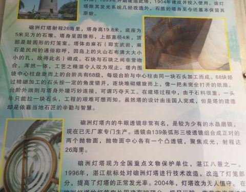 【趣味】硇洲灯塔在湛江硇洲岛上,世界三大灯塔之一,也是世界上仅有的2座水晶磨镜灯塔之一【趣味】硇洲灯塔在湛江硇洲岛上,世界三大灯塔之一,也是世界上仅有的2座水晶磨镜灯塔之一。和著名的好望角的灯塔一样,世界闻名。硇洲灯塔高23米,底宽5米,顶宽4米,整座灯塔由很多麻石一块块的砌起来,当中没...【趣味】硇洲灯塔在湛江硇洲岛上,世界三大灯塔之一,也是世界上仅有的2座水晶磨镜灯塔之一。和著名的好望角的灯塔一样,世界闻名。硇洲灯塔高23米,底宽5米,顶宽4米,整座灯塔由很多麻石一块块的砌起来,当中没有用水泥浆的哦。 展开