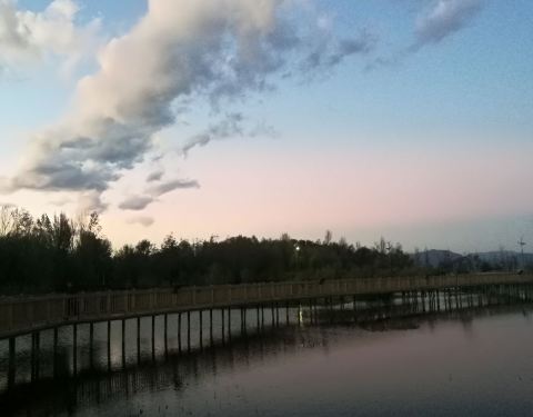住在大理下关这里的美咖海景客栈,天天下雨,却天天看到有人在洱海边走。 终于最后一个清晨,开太阳了, 同事很神秘地对我说,我跟你讲,前面有个湿地公园,就是大家走的那个方向我已经在那里呆了一个多小时了。鸟儿可惬意了,我都把手机拍没电了才回来,现在在充电。 我问她走过去要多久,她说20分钟。 看看时间,打个来回要40分钟,满打满算,我只能在那里停留五分钟就得集合, 但是不死心的用高德地图又导航了一下,告诉我走过去11分钟,于是果断出发了。 清新的空气,天光云影共徘徊的美景。哪儿是鸟儿惬意啊?分明是游人内心自在啊! 时间还是有点紧张,我匆匆按了几张照片就回去了