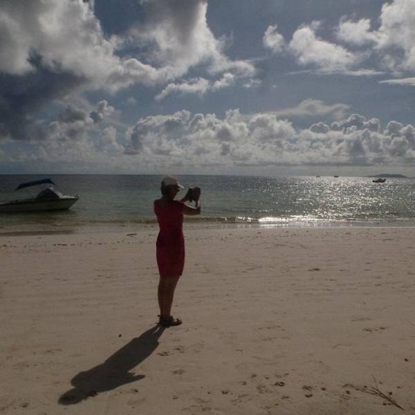 车行驶到Anse Volbert,大家下车去看沙滩。这里的沙子细若粉末。尽管才上午9点不到,阳光已是火烈火烈。我们都感觉无法在烈日下支持太久,一旁的黑人兄弟却说“这就是天堂”。