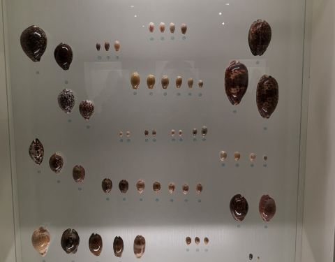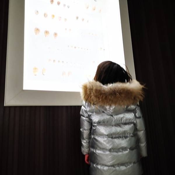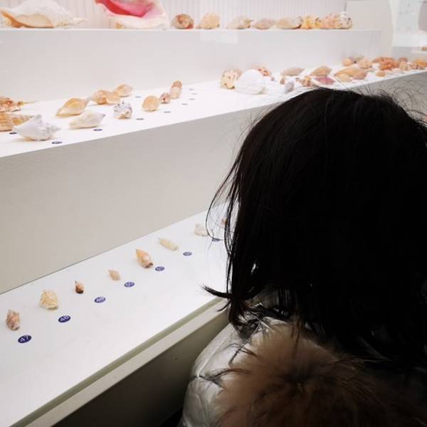 在这里既有号称“海贝之王”直径一米的大砗磲,也有需用放大镜才能看到的小沙贝,还有来自4.5亿年前奥陶纪的鹦鹉螺化石。笑笑对着巨大的粉色海螺,看出了神摆成笑脸的海螺小朋友对漂亮的海螺,看得非常专注鹦鹉螺充满数学原理的壳。 鹦鹉螺死亡后,软肉部分从壳中掉落,沉入海中,而壳则随波飘摇,构成了一个个美妙的海洋传说。鹦鹉螺的螺旋排列暗含斐波拉契数列,因此十分美观和神奇。 不仅如此,鹦鹉螺化石上的螺纹数,揭示着地月距离。这个螺纹每隔一月长一隔,因此可判断月球的绕行周期。科学家研究不同时期的鹦鹉螺化石,发现月亮离地球越来越远,以后会更远更暗。四亿年前月亮只有现在地月距离一半不到,看起来会非常非常大而亮。各种贝壳做的艺术品,向几百年前的匠人致敬这是一幅跟贝字有关的 中国 贝字族谱,快来找找有没有你的名字玳瑁色,快来了解一下在全球最长的贝壳T台上,笑笑撒花了贝壳灯,博物馆里的光影秀贝壳灯,博物馆里的光影秀最长的贝壳t台博物馆内展览的海洋中体型最大的一类贝类砗磲。打卡打卡。最大的贝壳1.3米,最小的贝壳1.2毫米,最古老的贝壳4.5亿年前吹响海螺号角,听听来自大海的声音【牛老板TIPS:贝壳博物馆】