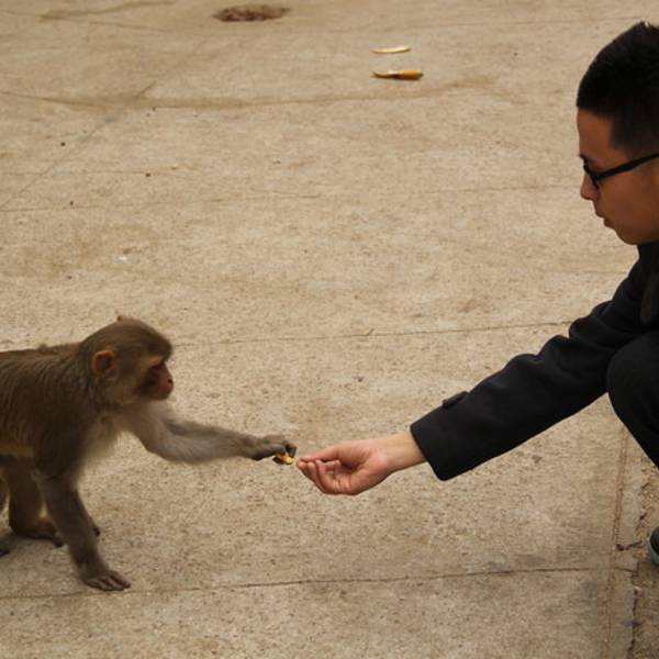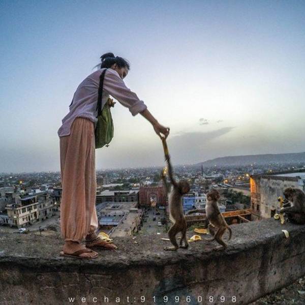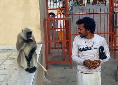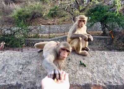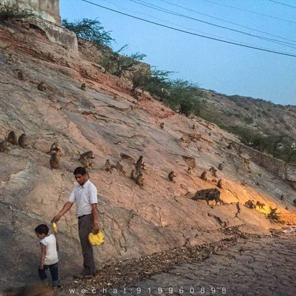 接着便出城来到了一个叫做galta的神猴之庙。位于悬崖峭壁之间的神庙自然是猴群密布。主要是好动的弥猴,也有少量的叶猴。进入神庙之前买了两包花生来“忽悠”这些猴子。我小心翼翼的将花生放于手中,顽劣的猴子也小心翼翼的来索取我手中的花生。当第一次紧张的交易顺利进行后,后面的就变得非常舒畅,人猴双方似乎都放松了警惕。尝到甜头的猴子呼唤同伴过来分享花生。 展开