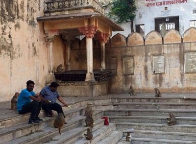 来斋普尔的游客大多选择到琥珀堡-老虎堡去看城市全景,猴庙其实也可以看全景,只是少有人知来斋普尔的游客大多选择到琥珀堡-老虎堡去看城市全景,猴庙其实也可以看全景,只是少有人知。这里的猴子虽然不怕生人,但也不像峨眉山的猴子会主动打劫你。