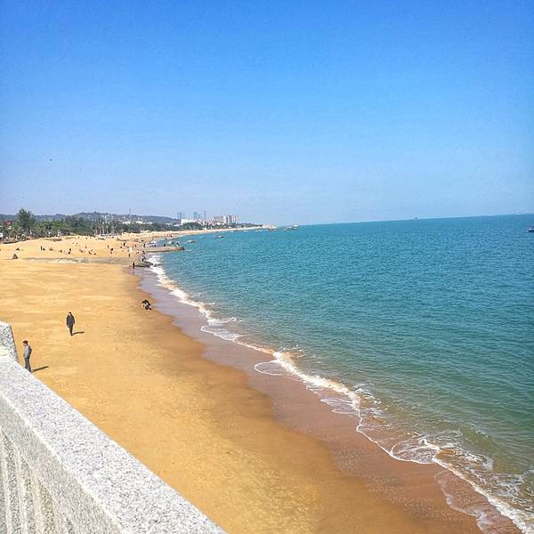 海韵台的海水,在天气好的时候还是值得一看的海韵台的海水,在天气好的时候还是值得一看的。周末沙滩充满了放风筝的人,沙滩赛车的人,溜宠物的人,还有一些海上活动。
