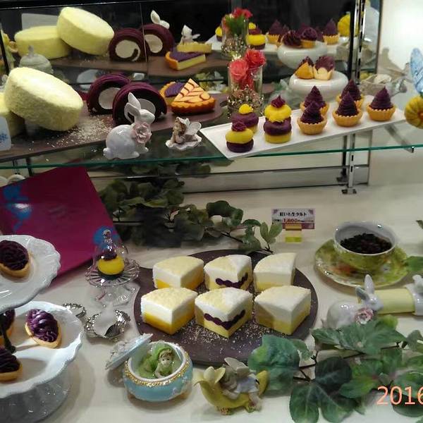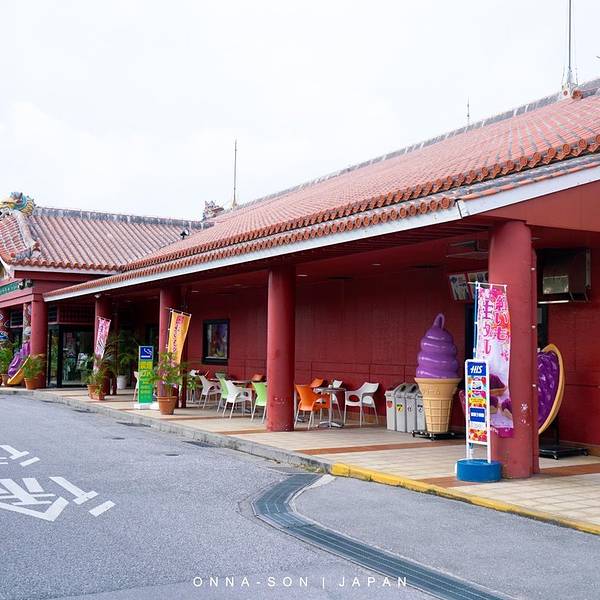 虽然下雨了,但不影响下一个景点的参观,因为是Day Tour唯一的购物环节,不过完全不用担心会被强制消费。御菓子御殿是冲绳非常知名的糕点店,有很多家分店,国际通也有一家,游客们通常都会买伴手礼回去。店内其中最有名的是以紫薯为原料、外貌像小船一样的点心,名为红芋挞。我们来的恩纳店是可以观看到其制作流程的。售卖的糕点都可以试吃,我买了一些紫薯船和其他味道还不错的点心,因为国际通上也有分店,心想着不够再补货就好了。除了吃的,店里还有纪念品售卖。