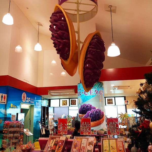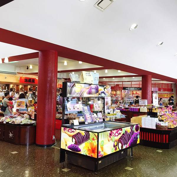 【简介】御菓子御殿是冲绳知名的特产店,主打紫薯为原料的果子糕点、甜品等,不止恩纳,在那霸市中心,首里、国际通都有直营店可以选购,是很适合带回去送人的当地特色手信。缺点是有些包装过度,类似国内的月饼,可能一盒就8个紫薯糕,盒子很大,大家可以权衡。 【环境】店内除了蛋糕、冰淇淋外,都有试吃品,可以让店员给你尝试,一定推荐冲绳紫薯风味的甜品,总体表现都不错。店内有中文产品目录可以看,中文翻译的无障碍。产品不参加购物退税。 【推荐】紫薯软糖味道不错,类似国内高粱饴之类的口感,更柔软一些,但是不变形,有些嚼劲,小朋友和老人不适合,一袋200g的大约40元,感觉这个价格还真不便宜;袋装紫薯糕也不错,紫薯口感很细腻,纤维感不明显,店员说可以冻半天,口感更好。随便买买花费轻松超100元人民币。