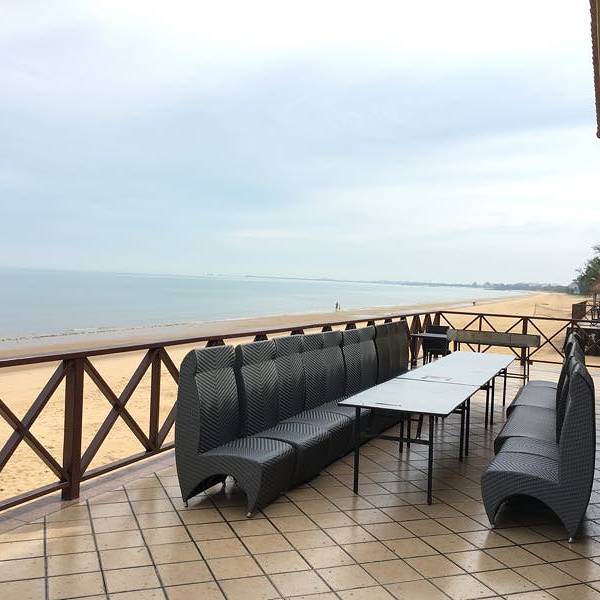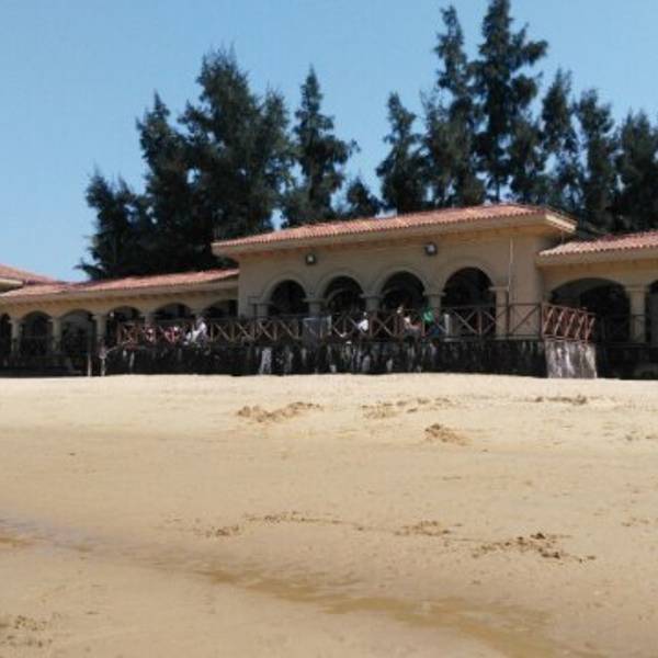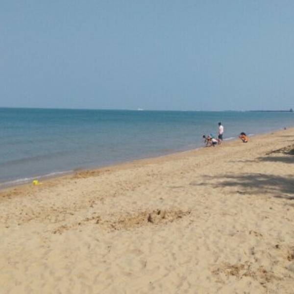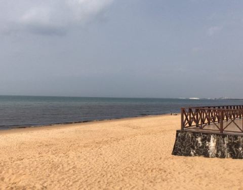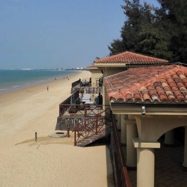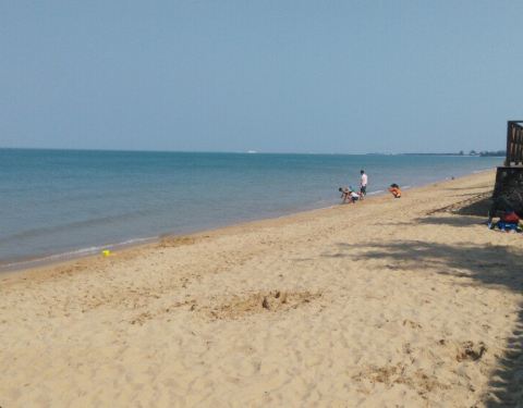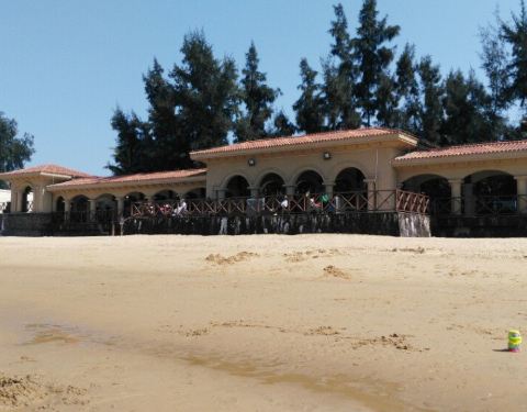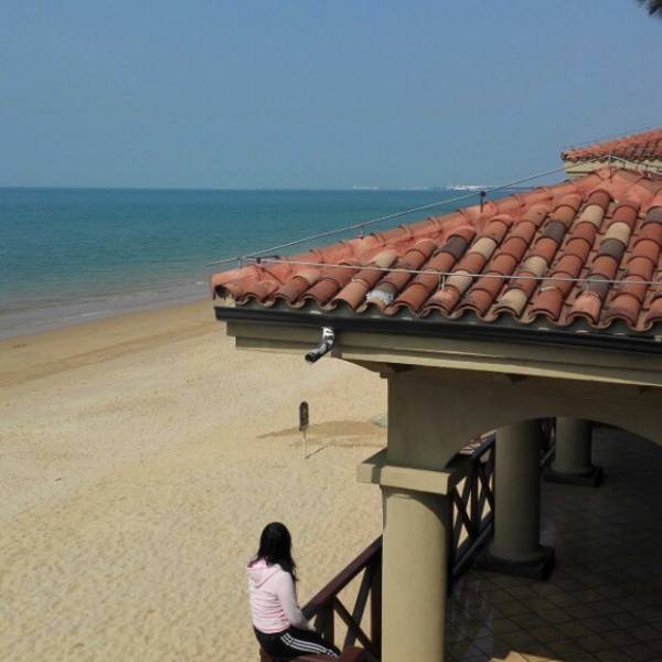 就在海边哦,蔚蓝~清亮的大海边,晒晒太阳,游游泳,好惬意~~