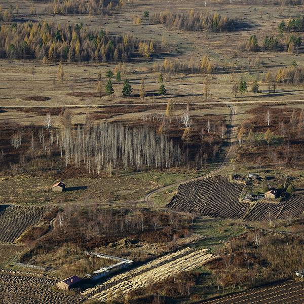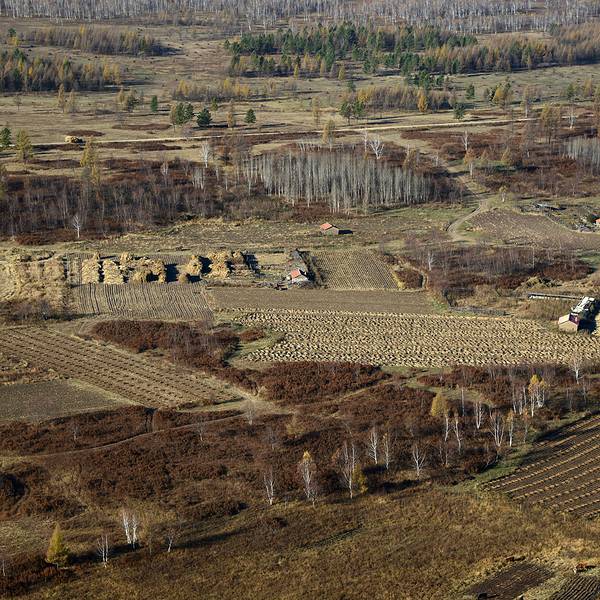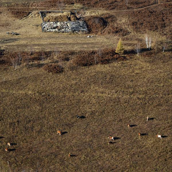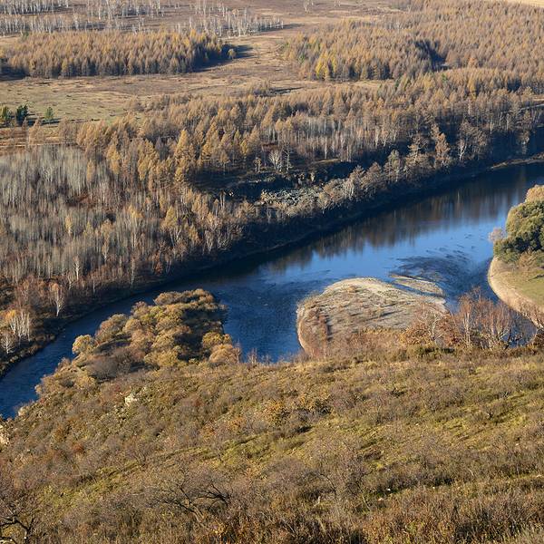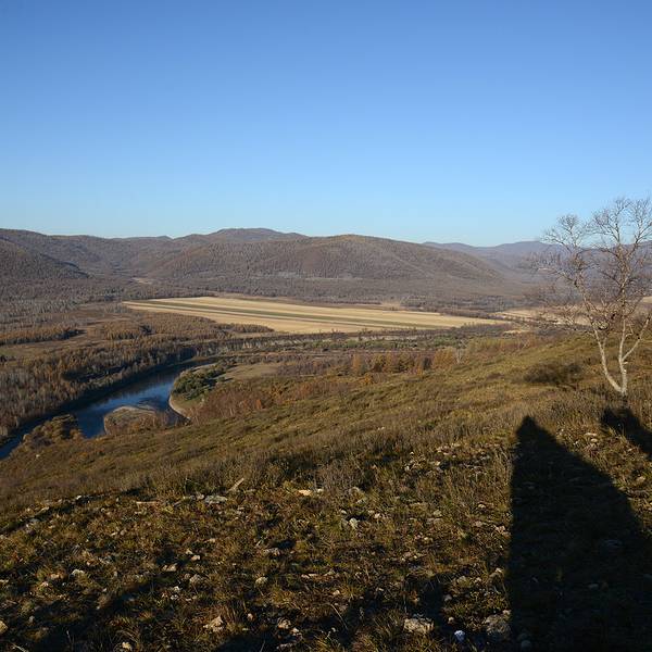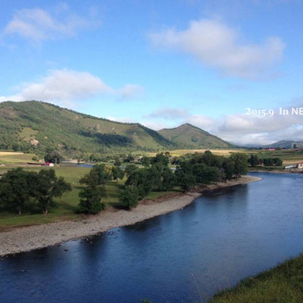 我们看完日出才7:00,回去还早一些,于是决定顺便去看看绰尔河。绰尔河和同心天池分列一座山的两侧,去看绰尔河的路是土路,越野车可以开到山顶欣赏。绰尔河是嫩江支流,发源于大兴安岭顶部石门子附近,全长470公里。 沿着山脊开,有三个地方可以欣赏绰尔河,最后一处过了铁塔的山脊上最是漂亮,光线也好。绰尔河的水蓝蓝的,河边有规整的农田,整齐的小屋,还有亮丽的白桦树,偶尔能看到牛羊,很有生活气息。从山上看,绰尔河弯弯曲曲流过,在一处河道有个分叉,呈现两个结合在一起的反“F”的形状。我估计在这里看日出日落都是不错的选择。