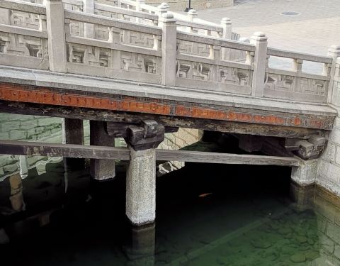 中国最早的平面立交桥,十字桥面飞拱,后经过翻修。连接献殿与圣母殿,相映成辉。