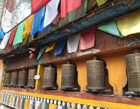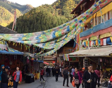 民俗文化村在树正寨里面,就是我们住的地方,这条街有很多买民族饰品的地方,是一个人文景点。经幡、转经筒和白塔都是藏族区内最常见的景物,用来祈福,要带着虔诚的心来。