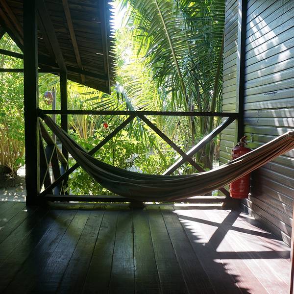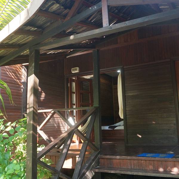 潜店的工作人员已经站在平台上欢迎我们。行李?哦,不用管,多种族、多肤色的帅哥们会负责把它们搬上平台、装上小拖车并拉去度假村。至于我们,就只需要跟着老板娘Cathy走就是了。Cathy边走边给我们介绍,此刻真是low tide,栈桥底下的水很浅,傍晚涨潮的时候海龟会游过来,现在只能看到水草、珊瑚和海星。但这些就已经让阿猪在那儿大呼小叫,看得津津有味了。趁此机会,我立马赶紧几步来到Cathy身边压低声音说:“Hi,我就是之前和你发邮件的Jerry,你还记得我和你说过的计划吗?”她立马想起,正要和我畅谈时,阿猪突然在后面出现高喊:“帅哥转个身让我拍一个呗!”吓出一身汗啊。。。秘密求婚计划,准备了一个多月,一直憋着,都到了岛上了被发现可不好啊! 走过栈桥中段的休息区,马布岛的白沙滩、椰林、还有原住民区就呈现在我们面前了。有人说,马布岛一般天堂、一半地狱。天堂当然指马布岛北面的度假村区,尤以东北面的两大水屋度假村为甚,即使是SWV的沙滩屋区,也和原住民的沙滩不可同日而语。地狱自然指岛上的原住民区,大多分布在马布岛的南面,还有一块就夹在Scuba Junkie和SWV之间,感觉甚至比岛上其他的原住民区域条件更差。 有人十分嫌弃岛上的贫民窟,认为他们搞乱了岛上的环境、弄脏了沙滩和近岸的海水,还带来不安全因素(他们可是菲律宾难民)。也有人带着十分强烈的人文关怀情绪,过来给这里的原住民拍了很多照片,和他们交流玩耍,给他们生活的用品。我作为一个普通游客,不想带上什么沉重的心情和人文思考,走过、看过、拍两张照记录一下而已。他们对于我,是一段旅程中的经历和回忆,我对于他们,则什么也不是,何必想太多呢? 网上能够查到的关于这家度假村的信息太少了! Scuba Junkie大概始终定义自己为一家潜水中心而不是海岛度假村吧,始终在中国游客的圈子里不流行,加上他家只提供英文的潜水教学和服务,甚少有人会选择。我只能上Tripadvisor查资料。不得不说,欧美人的旅游观和我们真不一样,他们会乐意花很长的篇幅,从各个角度给出细致的文字点评,但就是吝啬地不肯上几张清晰的、能让人看到这家度假村全貌的照片!导致我来这里之前只有抽象的概念,没有直观的印象。 我看上这家店,一是因为他在马布岛上有住宿,二是因为听说沙滩小屋性价比很高,三是潜水专业程度口碑很好。至于非母语潜水教学,我秉持着“岸上交流耐心问,下水之后中文教练也不能开口说给你听”的态度,没觉得是个障碍。 走入度假村,我才体会到什么叫“性价比高”。很多潜店提供的住宿号称是度假村,其实就是背包客栈。Scuba Junkie比较老实,人家在仙本那开的旅馆就叫Backpackers,在马布岛上就叫Beach Resort,当之无愧。充满异域风情的设计、繁花似锦的热带风景、干净整洁房间、齐备的设施、优质的服务和热情的住客,这就是我对这里的印象。在这里,我绝对得到了远超过170马币一天的食宿体验,关键还要加上心理的体验,而阿猪这么挑剔的人也说以后来马布岛还要来这家。这里虽然不完美、奢华,但绝对给我这样的消费者留下美好的体验。 我就抛弃按照时间线记录的顺序,详细、全面地展示一下Scuba Junkie的沙滩度假村吧。 Scuba Junkie是以注重环保著称的,这一点对国人似乎还不是什么具有吸引力的亮点。一走下栈桥来到沙滩,就能看到他们的海龟蛋孵化基地。他家每星期还组织游客清扫沙滩(虽然杯水车薪,但至少让度假村面前的这片海滩干净不少)、组织欧美员工教当地小孩子学习英语,看来是比较注重“企业社会责任”的嘛。