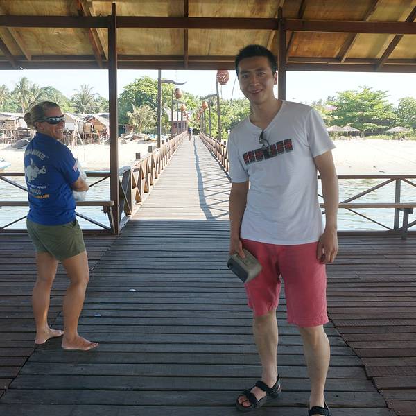 潜店的工作人员已经站在平台上欢迎我们。行李?哦,不用管,多种族、多肤色的帅哥们会负责把它们搬上平台、装上小拖车并拉去度假村。至于我们,就只需要跟着老板娘Cathy走就是了。Cathy边走边给我们介绍,此刻真...