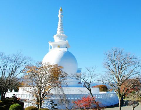 平和公园的设立,正是为了表达日本人对战争的控诉、祈求世界和平的愿望。平和公园,不单意味深长,而其清幽雅致的景色更是她魅力所在。 公园范围敞大,占地万坪,典型的日式庭园建筑、巨型喷水湖泊及小型动物园,广植各种树木及花卉,彷如人间美境。这里也是远观富士山的好地点,天气晴朗时,富士山的壮丽景色更可一览无遗。至于园内有名的莫过于一座来自印度的舍利子塔,白色的塔身,下面放有金色的佛像,笔直地屹立在平和公园的大广场上,从佛性的慈悲表达了反战讯息。此外,公园内还有大小钟各一座,游客可在大钟下拍照留念,亦可敲打小钟,静听庄严肃穆的钟声在大自然间回旋飘荡。在下山的路上建有一座庙宇,大门左右各置神像,门外更有特大草鞋等趣味装饰,充满传统日本情怀。