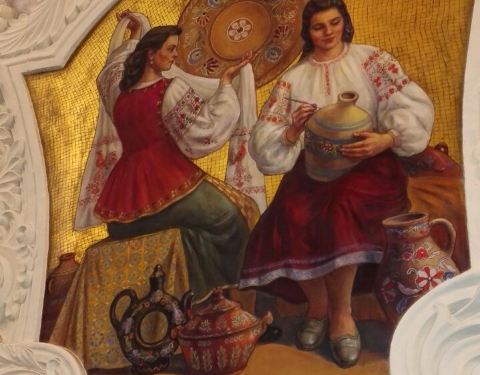 迎来的是一个个拱门连接的地铁站,并且有很多彩绘墙,非常的美丽,讲述了苏联时代的,工农劳动者的情景马雅可夫斯基站是莫斯科最精美的地铁站,我们乘坐长长的扶梯下去。迎来的是一个个拱门连接的地铁站,并且有很多彩绘墙,非常的美丽,讲述了苏联时代的,工农劳动者的情景。但人很多,不能一一拍摄