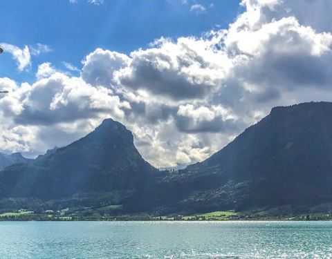我们留给这里的时间并不多,只想和当地人一样,犯懒似的坐在湖面,静静感受沃尔夫冈湖的清澈静谧,湖面的微风吹来,一切豁然开朗。这里既适合度假又不乏日常生活的烟火气,没有吵吵嚷嚷的旅行团,只有铺天盖地把你无声包围的湖光山色。