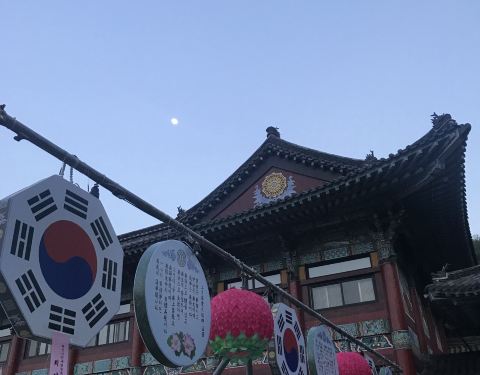 韩国三光寺,这里已经有很多年的历史了,来这边的信徒非常的多,在这里还可以住宿,这里的建筑还是很有特色的佔地面积也比较大。。