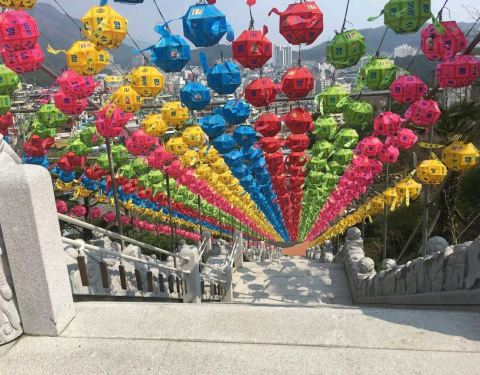 三光寺在釜山是很有代表性寺院,整个寺院被五颜六色整齐排列的的灯笼装饰着非常漂亮,每年的5月份这里还会举办燃灯庆典,到时晚上灯笼全部亮起会更好看。