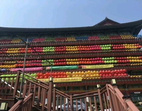 整个寺院被五颜六色整齐排列的的灯笼装饰着非常漂亮,每年的5月份这里还会举办燃灯庆典,到时晚上灯...