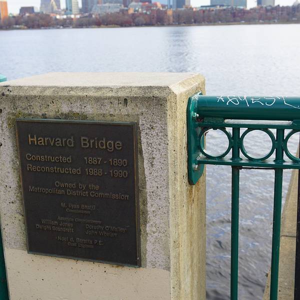 哈佛桥(也被当地人称为麻省理工学院桥,马萨诸塞大道桥),是连接波士顿和马萨诸塞州剑桥镇的钢托臂梁桥。哈佛桥横跨查尔斯河,全长659.82米。关于哈佛桥有很多故事,最著名的就是关于这座通向麻省理工大学的桥却被命名为哈佛桥的原因。当年市政府建好这座桥之后倾向于将其命名为哈佛桥,因为哈佛大学历史悠久。在征询MIT的意见时,MIT的教授学者很出乎意料的大方同意了。原来他们经过研究发现这个桥在结构上有问题,通车之后一定会出问题,命名“哈佛桥”避免MIT的名声受到影响。果不其然,哈佛桥在通车五年之后出现坍塌,现在的哈佛桥是后来重建的。另外,计量哈佛桥的长度有一种专门的度量单位,叫“Smoot”。1958年,五个很喜欢恶搞的MIT学生组织了一个活动,决定利用其中一位同学Oliver R. Smoot的身体,丈量一下波士顿哈佛桥的长度。四个人齐心协力,把Smoot的身体象个大风车一样,头接着脚,脚接着头的从桥头转到了桥尾。最终测得桥的长度是364.4 Smoots,再加他的一只耳朵。随后他们每隔10Smoots用绿色的油漆在桥上做了标记,并把"364.4 smoots plus one ear"得意地标注在了桥头。随着时间的推移,这个标记单位更为当地警方所接受,以至于当地交通部门的对话中,可以经常见到类似这样的对白:“有车辆在哈佛大桥发生车祸,位置在多少多少Smoots。”1987年,当地政府重新加固了大桥,大桥上面原来的Smoots标记被抹去了,因为Smoots度量标记的重要性,当地政府利用其时在MIT读书的老Smoot的儿子,重新测量了大桥并做了标注。于是Smoot居然成了一个大众计量单位。更有意思的是,这位Oliver R. Smoot后来曾经担任ANSI(美国国家标准研究所)的理事。