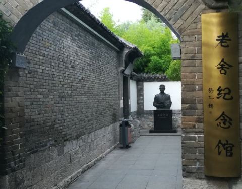 老舍纪念馆座落在大明湖南岸,是在原学院街12号院基础上建成的,免费开放。老式四合院,坐北朝南,青砖瓦顶,大约200平米。老舍的儿子舒乙题写门牌,门匾则是老舍夫人书写的“老舍与济南”。室内有老舍的照片和资料,入院墙上有碑刻“济南的冬天”和老舍先生塑像。 1930-1936年,老舍先后在山东济南齐鲁大学和青岛山东大学任教。此间,他创作了长篇小说《大明湖》,《猫城记》、《离婚》、《牛天赐传》,还出版了包括《黑白李》、《微神》等15部短篇小说在内的短篇小说集《赶集》以及幽默诗文集《老舍幽默诗文集》。1936年老舍辞职,从事专业写作。在青岛工作和生活时期,是他一生中创作的旺盛期之一,最富于代表性的作品是中国现代文学史上的长篇杰作《骆驼祥子》。