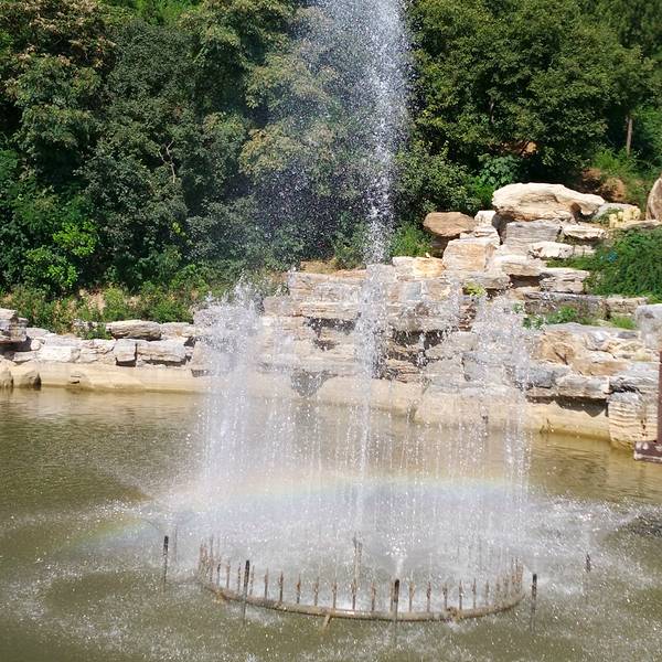 公园一进门是一个人造大瀑布,很漂亮,还可以过吊桥从瀑布下的水帘洞穿过去,小孩子很喜欢玩儿,拍照也很美。西山森林公园海拔不高,记得是四百米左右,总体坡度较缓。我们选择了绿色的登山道路,路修的很好,仿木设计,路边还有许多圆墩可以休息,难度不大,台阶较红色路线少,绿树成荫,非常凉爽,一路曲曲折折,所以也能够享受到登山的乐趣。从花溪为起点,拾级而上,会有人造雾气,宛如仙境。途径森林大舞台,小孩子的乐园。