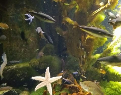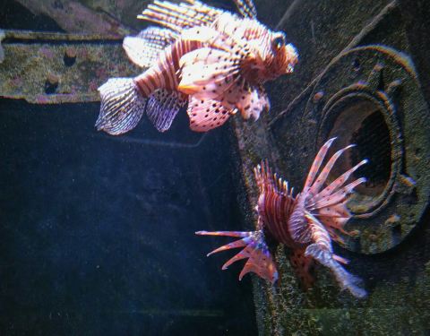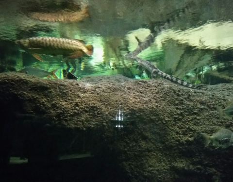 入口处,看大屏的时候,“鲨鱼”就在我们头顶游弋;每一种鱼都有图片介绍,看完介绍,再对号入座寻找本尊;触摸池可以触摸到软软的海星;巨型鱼类好像来自于古生代,这可是小月格格的最爱;小月格格一伸手,可爱的小鱼就带着笑游过来打招呼;龙虾躲在石缝里,好像带着一副不屑的表情看我们;这里还有《海底总动员》里面的箭头鱼;水族馆里还藏着一个热带雨林;海底隧道虽然不算很长,但仍然是孩子们最爱的海洋之梦 展开