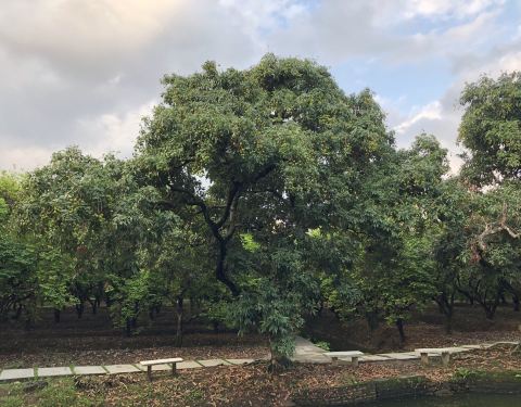 杨桃公园正...据说这个公园已经有有一百多年历史,占地约300亩。园内处杨桃树连片成林,间种有荔枝、龙眼、番石榴等其他果树,水光林荫,环境极为清新优雅,是珠江北岸现存的唯一--块具有岭南水乡特色的果基林地。