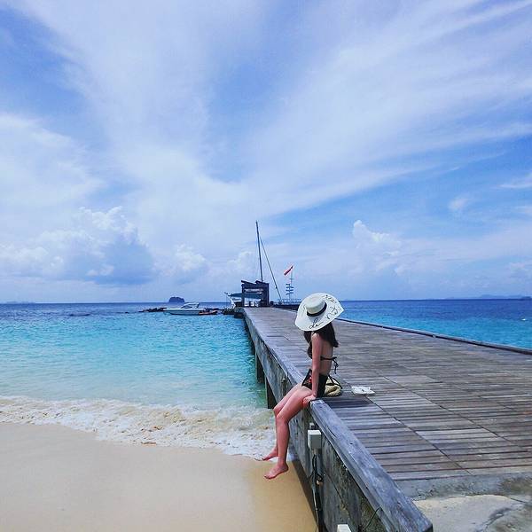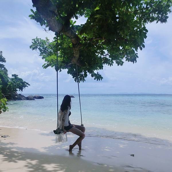 当然男友给拍了好多照片。哈哈哈感谢比心~而且他今天忘记带墨镜了。。辛苦他了这个地方很多新人在拍照喜欢这个秋千,可以做两个人哦~老人与海 哈哈哈玩了一下午的水,用go pro拍的。男友不穿救生衣就下海了,心里有点不放心他,全程一直都牢牢抓紧他,怕他掉下去了。看见了很多鱼群,感觉蜜月岛很值得来~