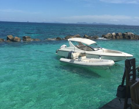 13:30-14:00 登上小皮艇,环绕红帆船一周拍照留念,前往蜜月岛登岛,途中寻找并追逐海豚;