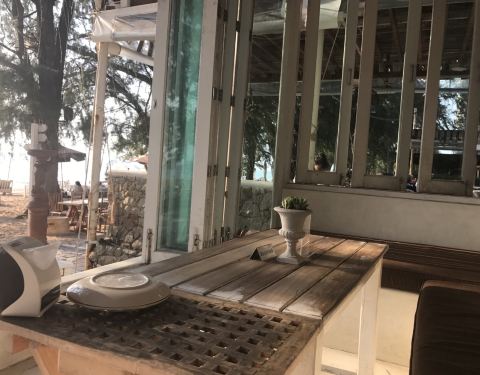 位于海边的玻璃房餐厅,室内的四面都是落地玻璃设计,下午主要供客人享用咖啡和甜品,环境布置很有欧陆风情。而室外部分则有花园雅座,也有设在海滩上的座位。白天和晚上是两种不同气氛,夜晚降临后,这里显得格外浪漫而宁静。提供了以海鲜为主的食物,也有美味的甜品供应。