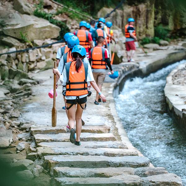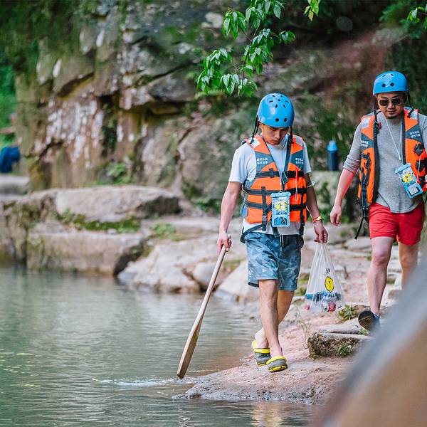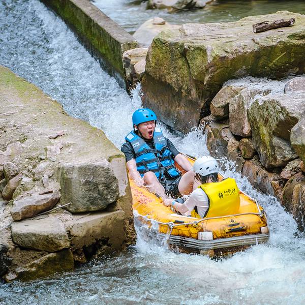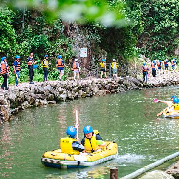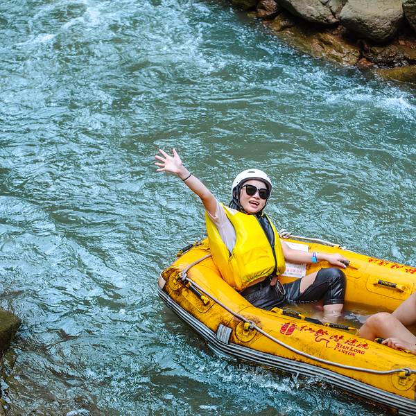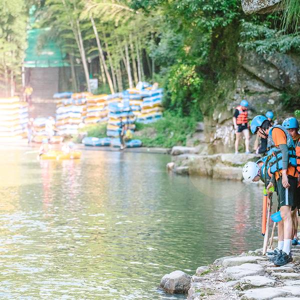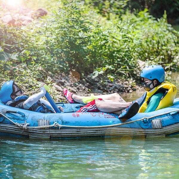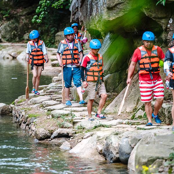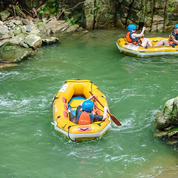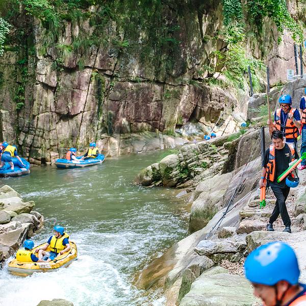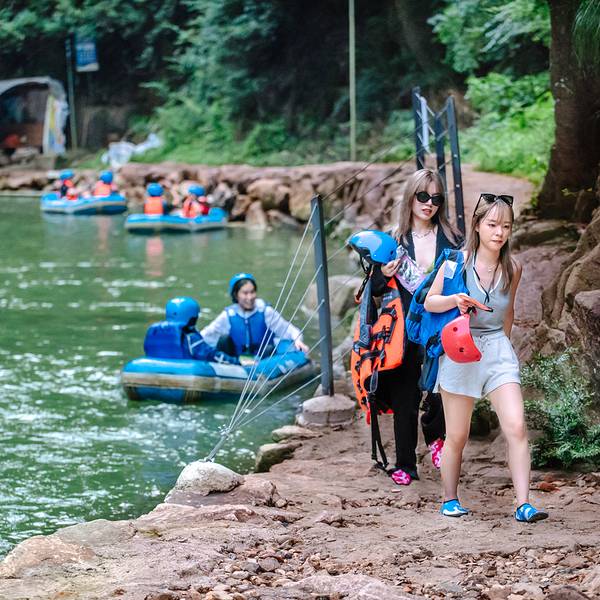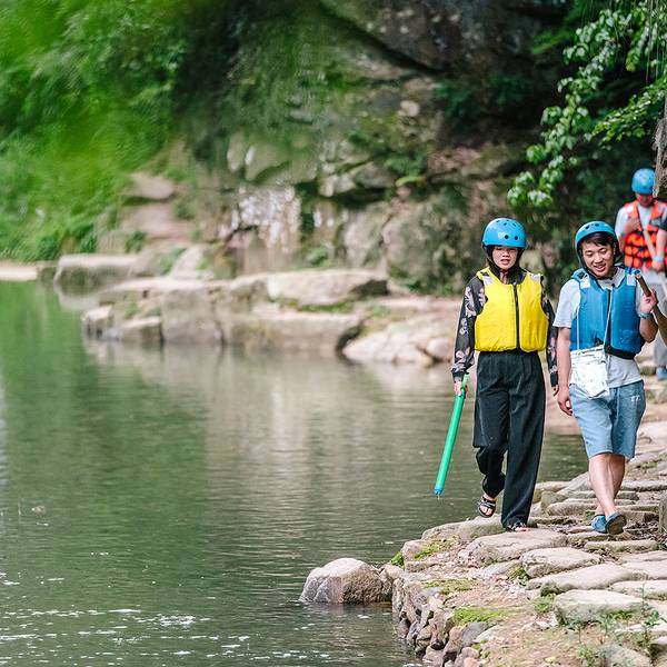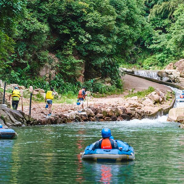 安全攻略:由于今年景区新加溯溪体验,无需坐景交车去起漂点。所以不会出现产生长时间排队拥挤的情况,客人穿戴好安全设备,自行溯溪体验,到达临时起漂点,可即可体验漂流。