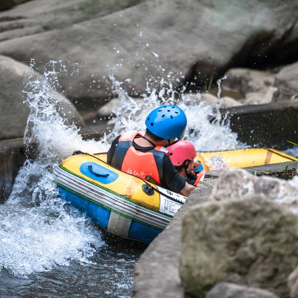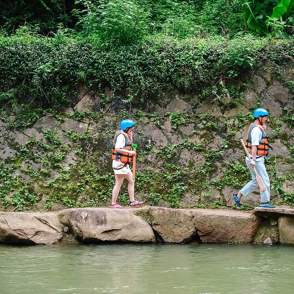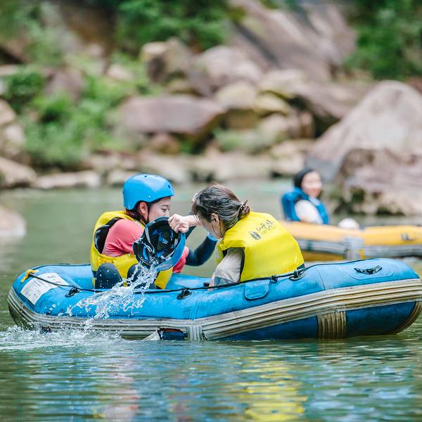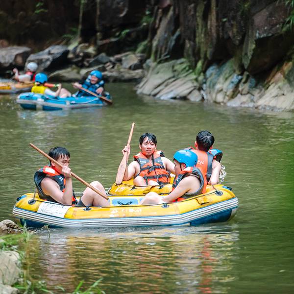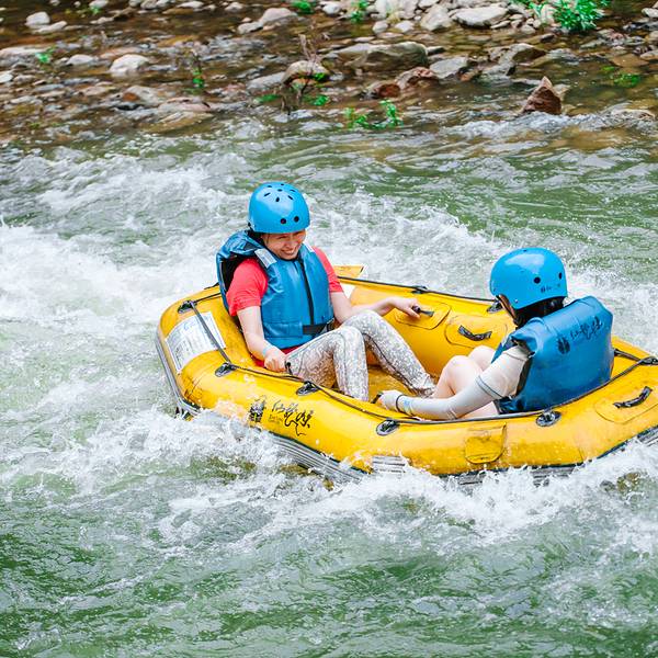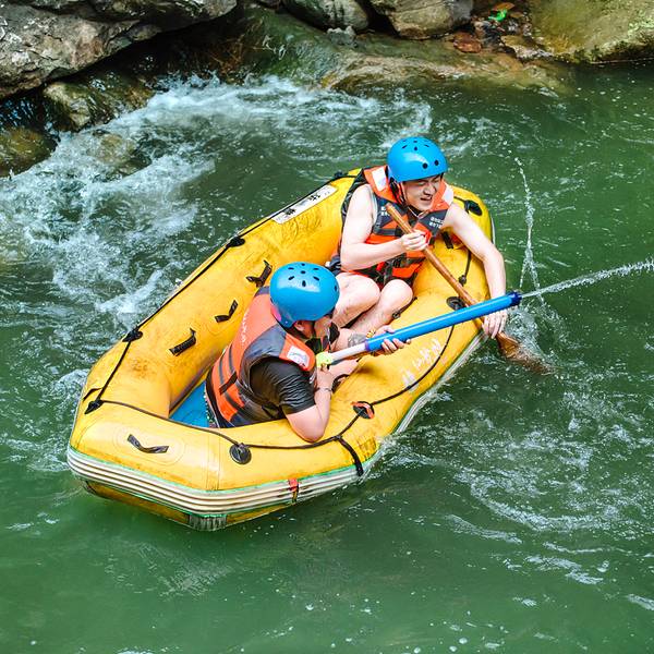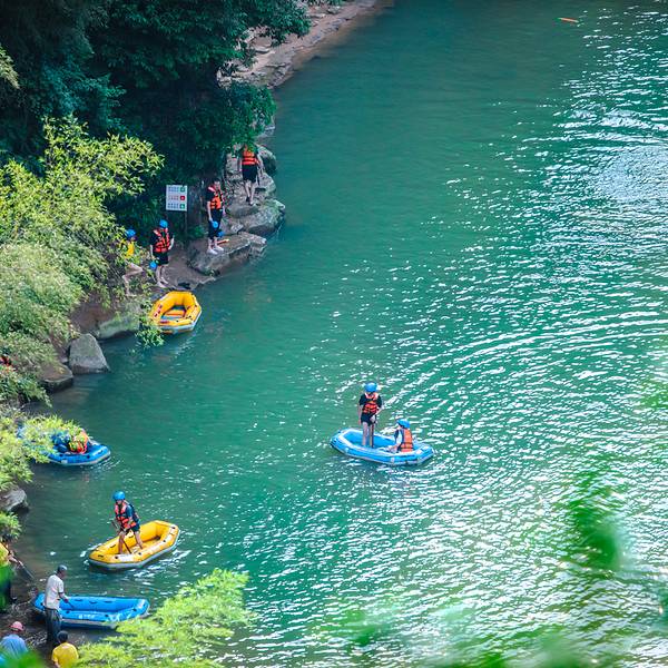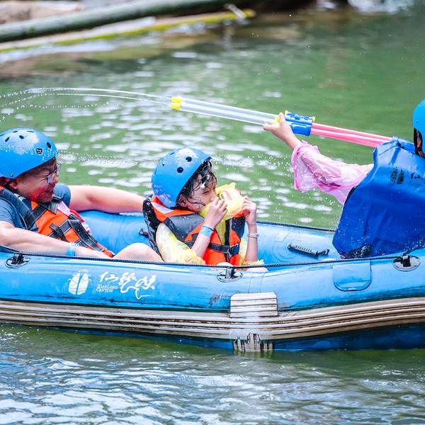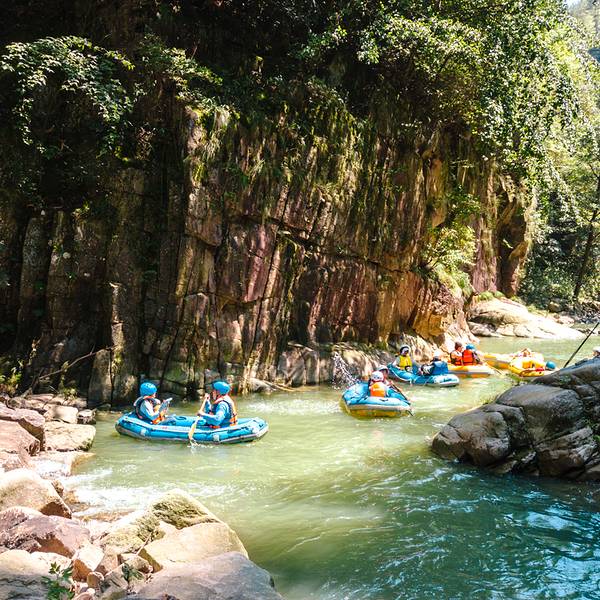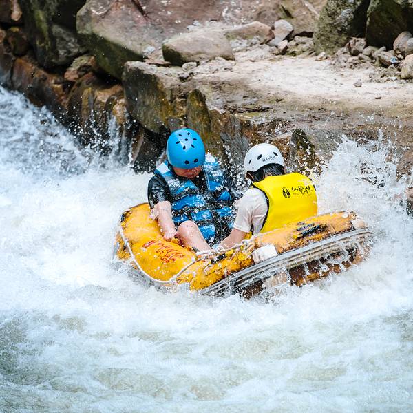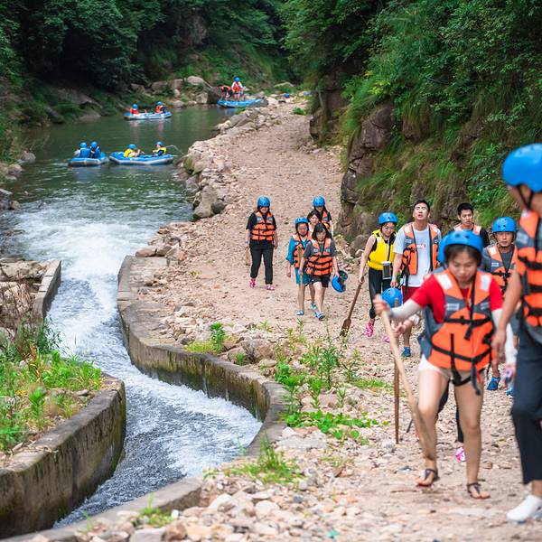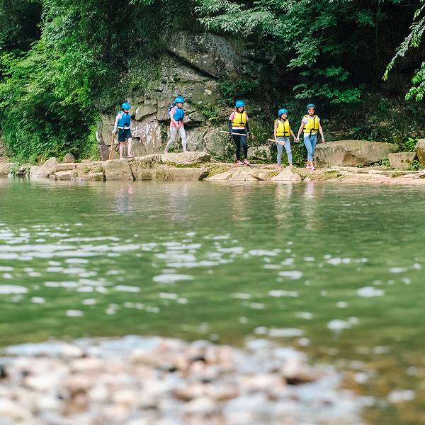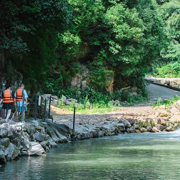 安全攻略:由于今年景区新加溯溪体验,无需坐景交车去起漂点。所以不会出现产生长时间排队拥挤的情况,客人穿戴好安全设备,自行溯溪体验,到达临时起漂点,可即可体验漂流。