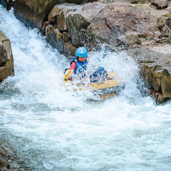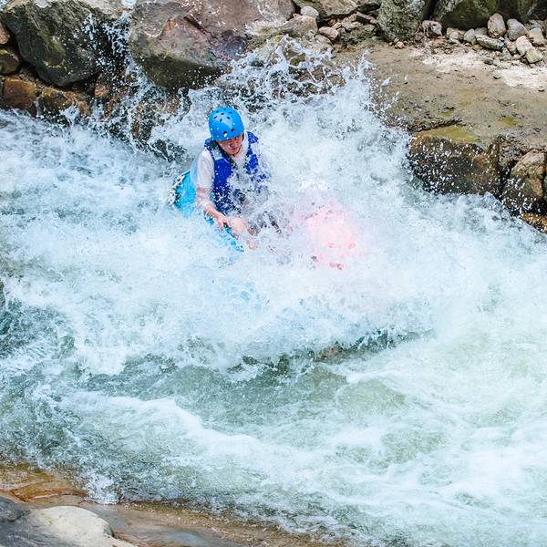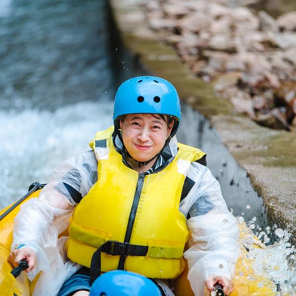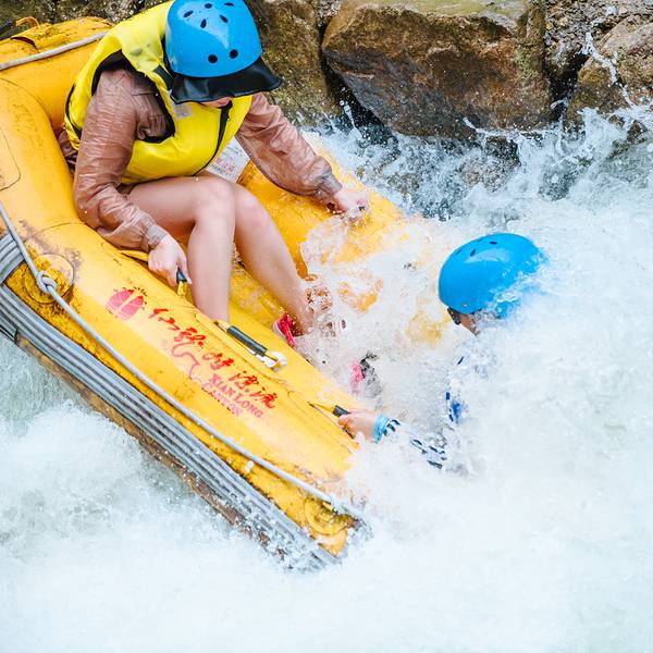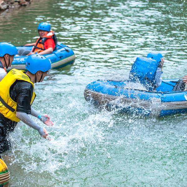 ①分段分流:7个滑坡滑道,景区都安排安全员维护安全及秩序,根据现场皮划艇数量,来控制导流速度。除非你在平水区,自己下船,或者是给同伴造浪,通常不会发生翻船,或者碰擦。