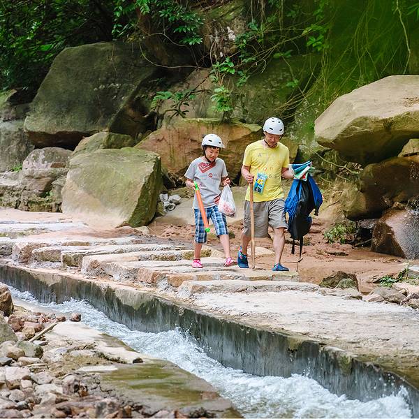 3)天然峡谷崖壁下穿行,切勿嬉戏打闹,注意溯溪道路况;