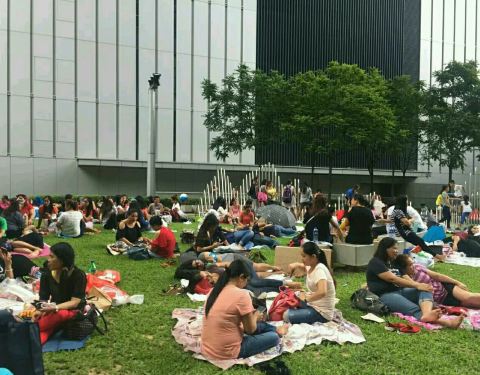 添马公园的绿地草坪非常好,软绵绵,绿油油,就像给整个公园铺的一个厚厚的地毯城市核心区的一处绿地广场公园,可供市民休闲娱乐运动等。添马公园的绿地草坪非常好,软绵绵,绿油油,就像给整个公园铺的一个厚厚的地毯。周末会有很多人在此野餐聚会。