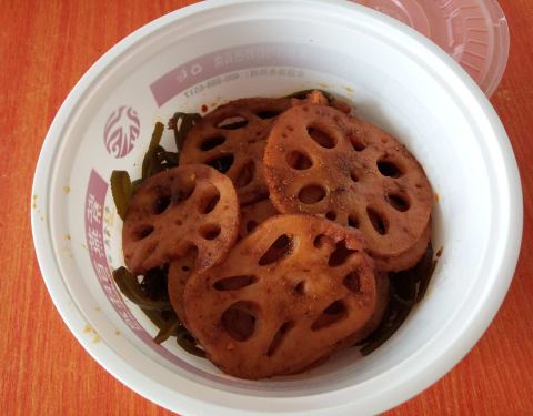 买了辣和不辣两种口味的鸡爪,还有海带和藕片,味道不错哦