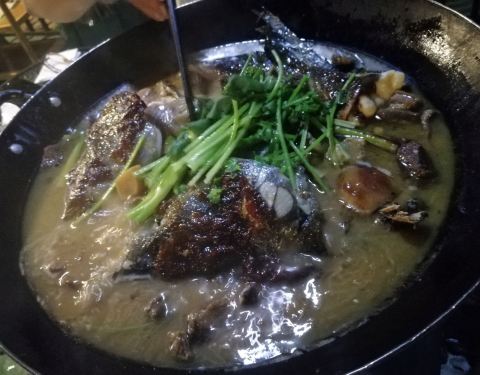 点了一大锅的鱼羊鲜锅,五六斤的缩骨鱼配合几斤羊肉,味道很鲜甜,吃的相当饱