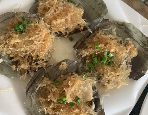 - 最好吃那盘蛤蜊,鲜咸适中、肉质细嫩。扇贝是略桔红的硬壳,个头不大味道不错