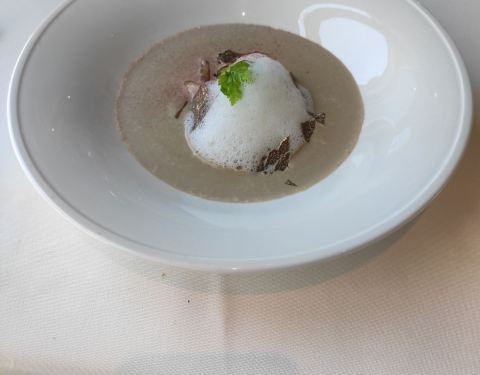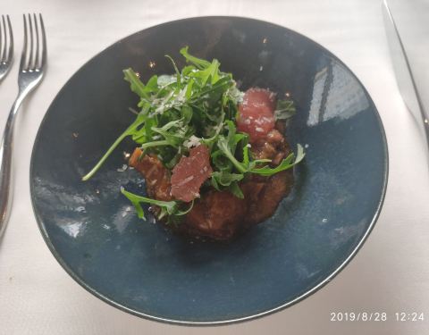 餐厅就在外滩旁边,可惜今天天气不好,云雾比较多所以都是朦朦胧胧的,但整体视线还是比较舒服的。那样装修都还可以。 【口味】口味我很喜欢,从餐前面包、前菜所有的下来都还不错。最喜欢意式番茄土豆丸子,土豆...餐厅就在外滩旁边,可惜今天天气不好,云雾比较多所以都是朦朦胧胧的,但整体视线还是比较舒服的。那样装修都还可以。 【口味】口味我很喜欢,从餐前面包、前菜所有的下来都还不错。最喜欢意式番茄土豆丸子,土豆丸子的口感很喜欢!M3和牛西冷5分熟,尚可。鳕鱼肉偏柴了一些,一般。 南瓜浓汤奶香很足,南瓜味淡了一些,看个人喜好,我个人喜欢南瓜味多一些的。汤里的杏仁片是点睛。 帕尔玛火腿配蜜瓜:好评!喜欢!火腿也不错~ 【服务】全程服务亲切 有人会给你倒水服务。虽然今天有个小哥哥服务员好像对展示气泡水倒气泡水倒流程不是很熟练,但还OK啦,看得出他很努力的样子。